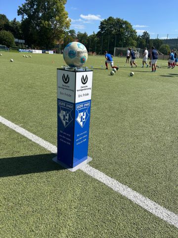 Pünktlich zum Pokalheimspiel unserer Ersten gegen die SpG Lohmen/Wehlen gab’s ein echtes Highlight: Dank Eric Fröde von der Deutschen Vermögensberatung steht unserem Verein nun eine nagelneue Ballsäule zur Verfügung. ⚽