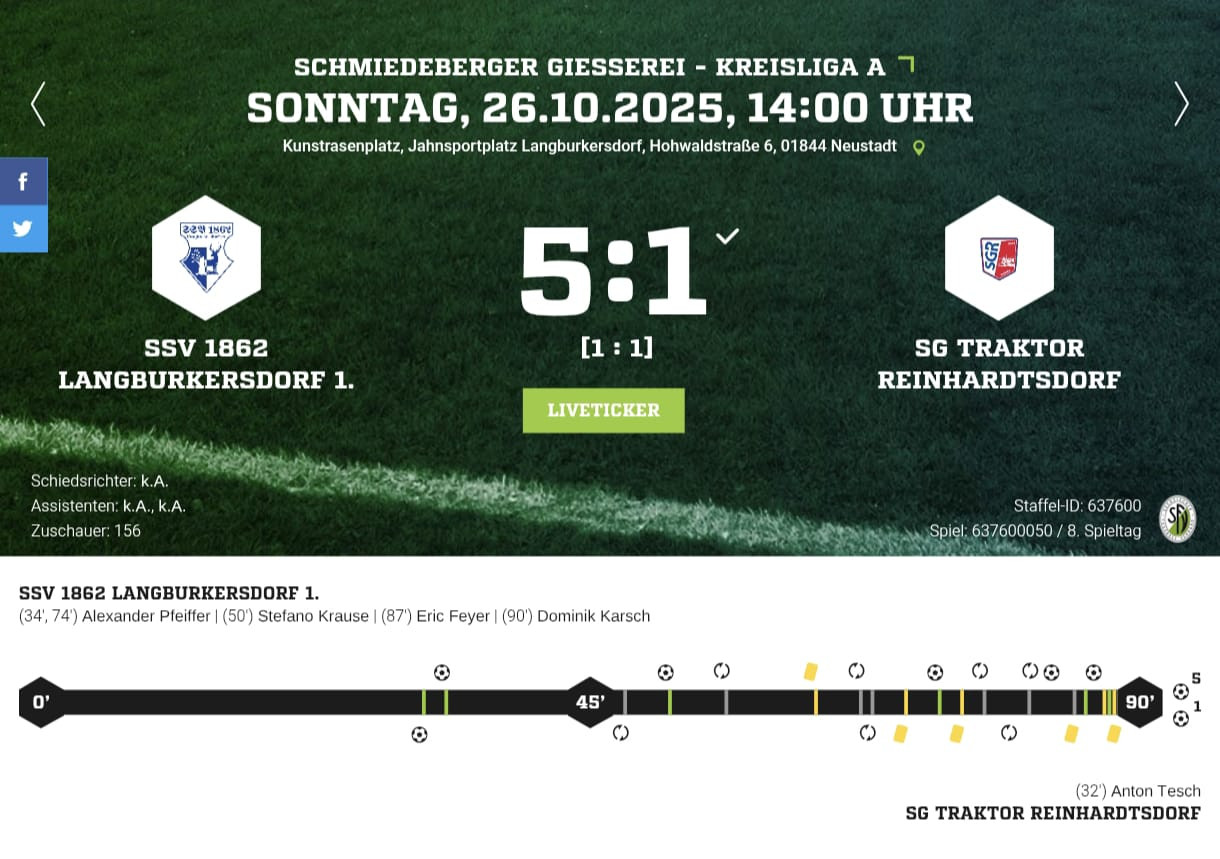 Am Sonntag, den 26. Oktober 2025, kam es in Langburkersdorf erneut zu einem Spitzenspiel. Nach den Partien vom Samstag traf der Dritte der Tabelle auf den Fünften aus Reinhardtsdorf.