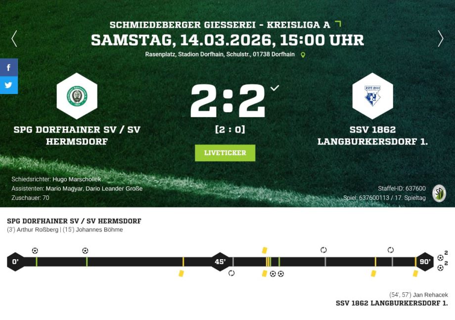 Zum Ausruhen bleibt jedoch keine Zeit: Bereits am kommenden Sonntag (22.03.2026) empfangen wir den TSV Seifersdorf im Jahnstadion. Anstoß ist um 15:00 Uhr.