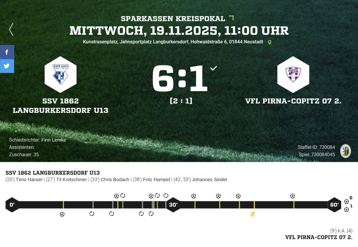 Im Achtelfinale des Sparkassen-Kreispokals empfing unsere D-Jugend am Buß- und Bettag die zweite Mannschaft des VfL Pirna-Copitz – ein Team, das seine Poolrunde zuvor verlustpunktfrei bestritten hatte und entsprechend selbstbewusst anreiste. Unsere Jungs zeigten jedoch von Beginn an, dass sie an diesem Tag eine kleine Pokalsensation im Sinn hatten. Wie sagt man so schön: „Der Pokal hat seine eigenen Regeln.“