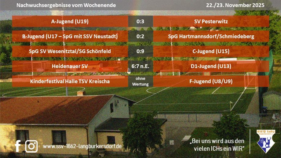Mit der 0:3-Niederlage bleiben wir zwar Tabellensechster, der Abstand zu den direkten Konkurrenten ist jedoch größer geworden. Das Spiel am kommenden Wochenende bei der SpG Hartmannsdorf/Schmiedeberg wird ins neue Jahr verlegt – die A-Junioren verabschieden sich damit in die Winterpause.