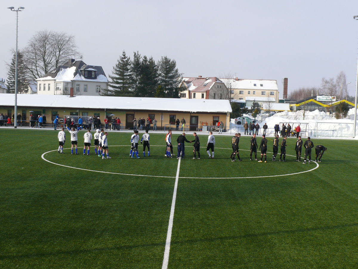 Als Voraussetzung für die Saisonvorbereitung unserer Fußballerinnen und Fußballer und für e i n geplantes Vorbereitungsspiel des Landesligisten SV Einheit Kamenz gegen den Oberligisten VfB 09 Pößneck wurde in mehreren Arbeitseinsätzen mitte Januar 2010 unser Kunstrasenplatz vom knapp 40 cm hohen "Daisy-Schnee" befreit (wer es nicht mehr weiß, das Tief, das uns den Schnee bescherte, erhielt den Namen Daisy). Wie sich schon wenige Tage später zeigen sollte, hatten wir dafür den optimalen Zeitpunkt erwischt. Während im weiten Umkreis die meisten Plätze wegen Schnee und Eis unbespielbar waren, präsentierte sich der unsrige in sattem Kunstrasengrün und bester Bespielbarkeit.